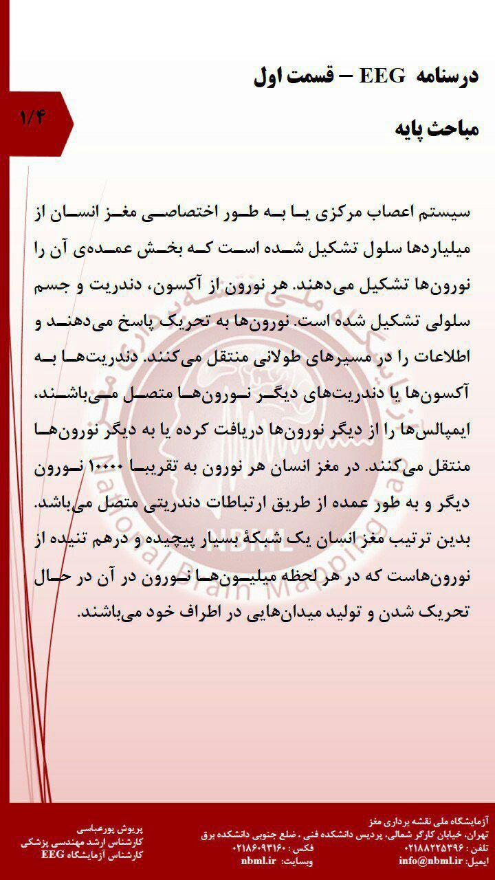 درسنامه های الکتروانسفالوگرافی (سیگنال دریافتی از فعالیت الکتریکی مغز)